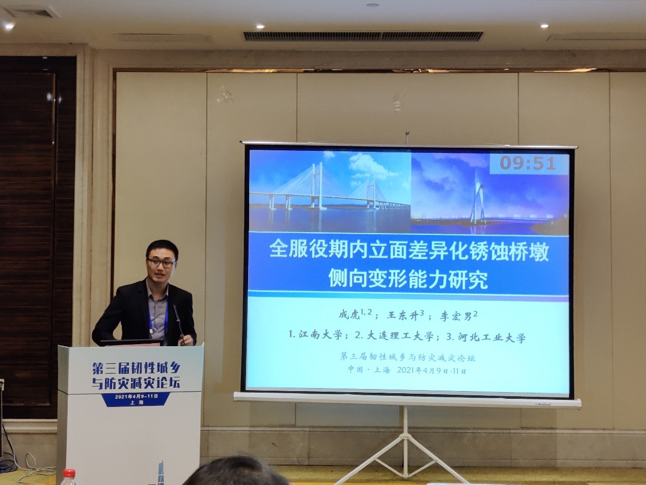 我院土木系青年教师付李、王城泉、成虎、杨兰兰和王龙等参会,重点关注了“城市基础设施抗震韧性评价与韧性提升”、“地震可恢复功能结构新体系及设计理论”和“地震灾害风险评估与韧性城乡防灾”等议题,与各位同行专家展开了深入的交流和探讨。成虎和杨兰兰两位教师分别就“全服役期内立面差异化锈蚀桥墩侧向变形能力研究”和“高精度匹配设计反应谱的影响矩阵方法”作了专题报告,引起了与会人员的广泛关注。