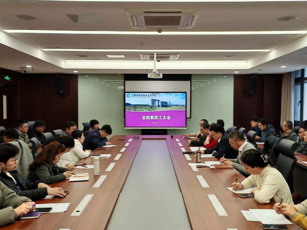 2025年12月24日,环境与生态学院在钱盘生楼A210召开全院教职工大会,全面总结年度工作成果,系统谋划下一阶段发展目标。会议由学院党委书记杨延主持,全体教职工参会。