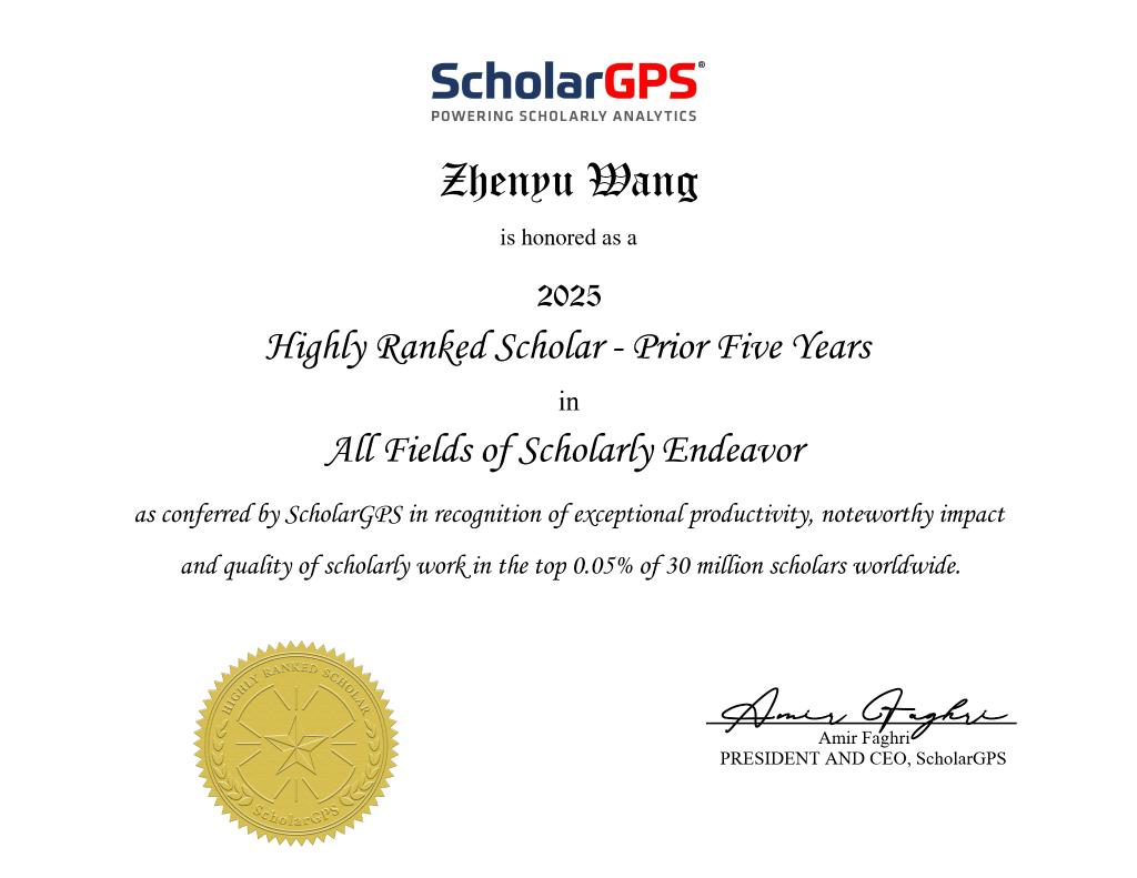 ScholarGPS“全球前0.05%顶尖科学家”荣誉证书