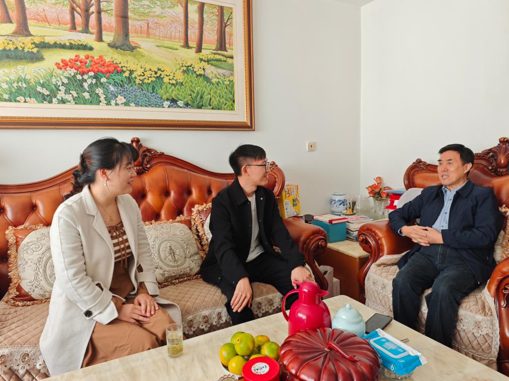 秋来又重阳,情暖桑榆晚。重阳佳节来临之际,为大力弘扬中华民族传统美德,充分发挥“五老”的独特优势和重要作用,2025年10月29日上午,环境与生态学院专职组织员周佳赟、本科生辅导员李猛和研究生辅导员周期,走访慰问了学院关心下一代工作委员会的老同志代表,向他们致以崇高的敬意和节日的祝福,并送去学院的温暖与关怀。